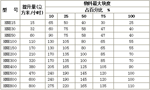 7.輸送能力大,該系列提升機(jī)具有NE15~NE800多種規(guī)格。提升量范圍為15~800m3/h。