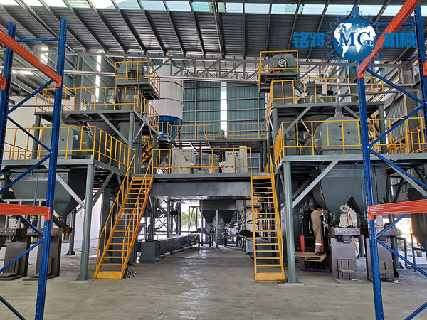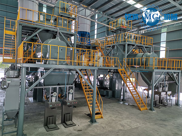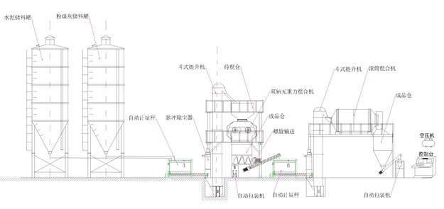 該套生產(chǎn)線在全自動(dòng)干粉砂漿生產(chǎn)線的基礎(chǔ)上,增配針對(duì)玻化微珠物理特性專門(mén)研制的離心式滾筒混合機(jī)及高效專用體積打包機(jī)(敞口包裝機(jī)可選)。該套生產(chǎn)線效率高、產(chǎn)量大、適用性強(qiáng)、操作性好。該套設(shè)備實(shí)現(xiàn)多點(diǎn)除塵處理,工作環(huán)境好,有力保障員工身心健康,創(chuàng)造高效清潔的生產(chǎn)環(huán)境。