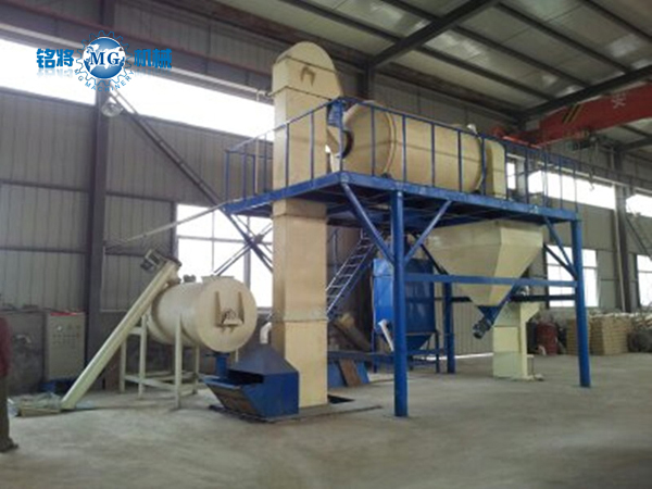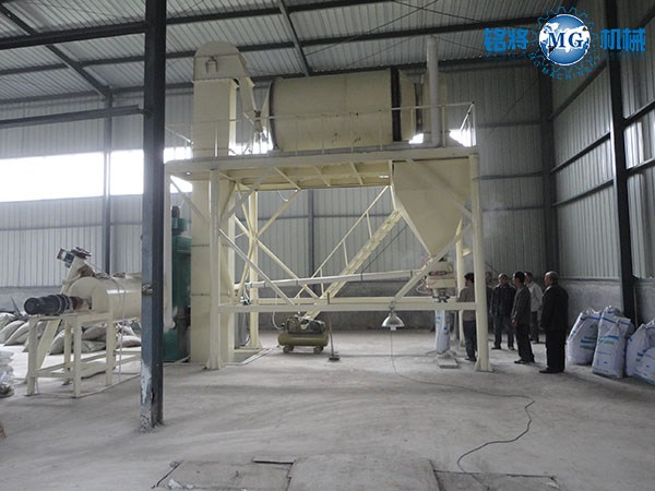 該生產(chǎn)線由臥式螺帶混合機、斗式提升機、玻化微珠滾筒混合機、自動包裝機和除塵設(shè)備組成。該套生產(chǎn)線先將填充物料通過臥式螺帶混合機進行預(yù)混,然后再與玻化微珠在滾筒混合機中進行混合,既減小;⒅榈钠茡p又使物料得到充分的混合,保證產(chǎn)品的質(zhì)量。另外該套設(shè)備配備一到兩臺脈沖式除塵器大大改善工作環(huán)境,減少粉塵對人體的傷害是做無機保溫建材中小型企業(yè)的理想產(chǎn)品。
