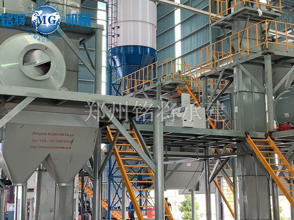 由我公司承建的馬來西亞Spraytek Asia Pacific SDN BHD公司保溫砂漿設備生產線,年產10萬噸,核心混合機由雙軸無重力混合機和滾筒混合機組成,即考慮到混合速度,又不破壞;⒅槲锢硇螒B(tài),達到保溫效果。