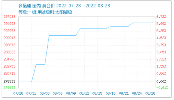光伏產(chǎn)業(yè)鏈,多晶硅報(bào)價(jià)從8月初的278333元/噸漲至294993元/噸,大漲16660元。
