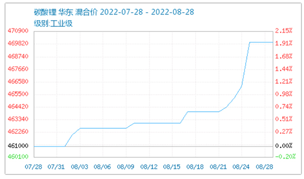 有料網(wǎng)了解到,近日鋰價(jià)持續(xù)上漲,企業(yè)現(xiàn)貨資源惜售為主。根據(jù)生意社數(shù)據(jù),碳酸鋰近期價(jià)格持續(xù)上漲,自461000元/噸漲至469820元/噸。